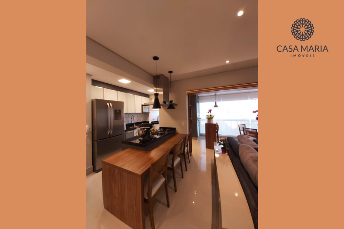 São 3 dormitórios, sendo 1 suíte com lavabo, além de uma dispensa prática e acabamento de alto padrão em todos os ambientes.