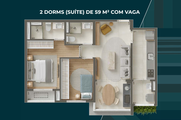 2 Dorms – 43m² e 59m² – Opção de suíte