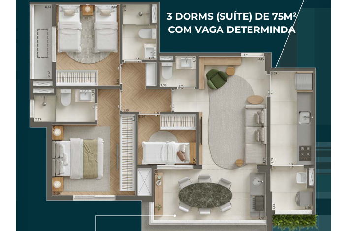 3 Dorms – 75m² – Suíte