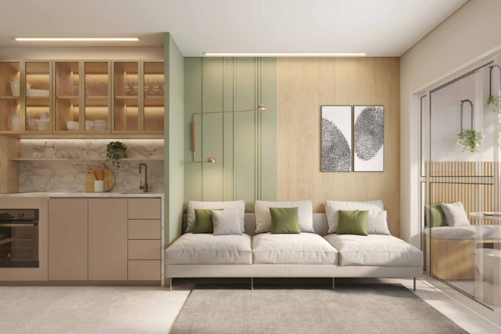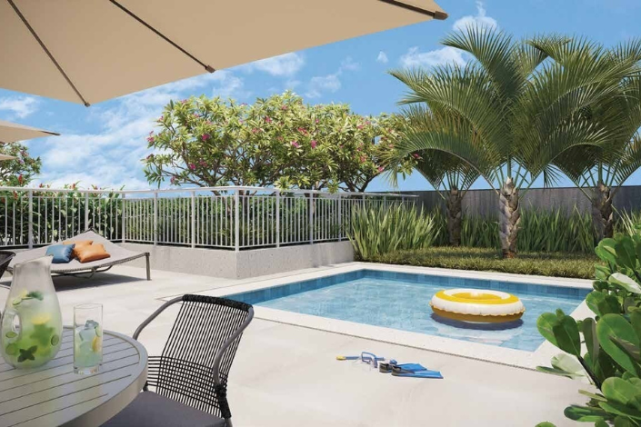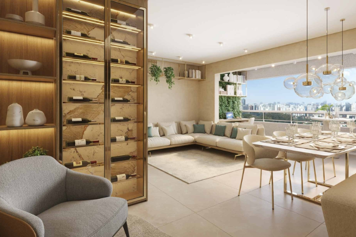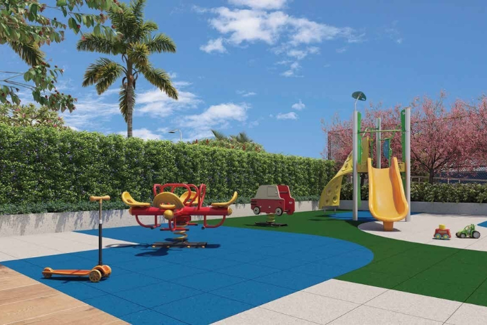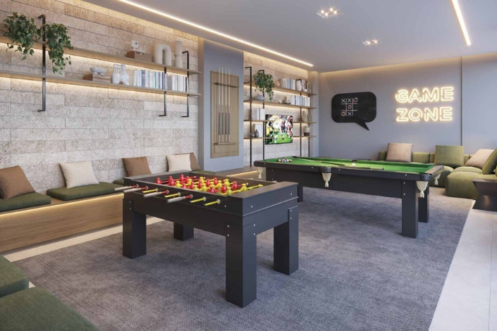 O lazer é completo e entregue equipado e decorado, funcionando como um verdadeiro clube. Inclui piscina adulto com raia de 25 metros, piscina infantil, deck molhado, fitness completo, salão de festas, churrasqueira, coworking, brinquedoteca, playground, quadra recreativa, pet place, lavanderia coletiva e minimercado.